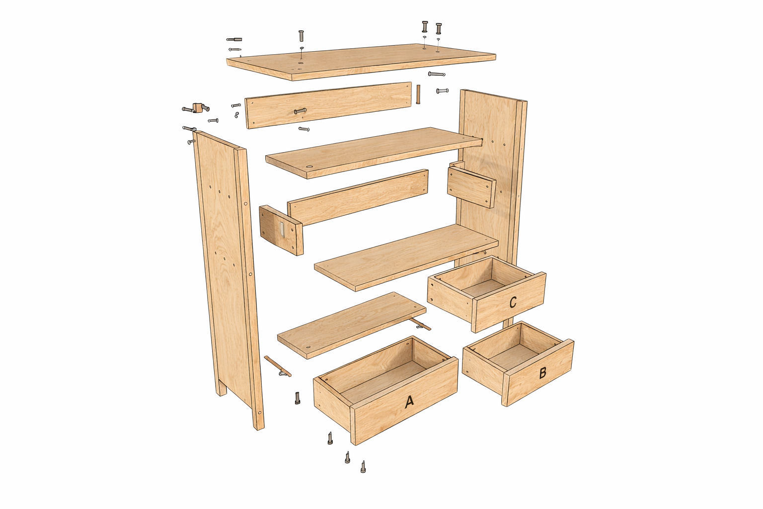 Tenha acesso a +6.000 projetos prontos de marcenaria para copiar, adaptar e executar até pelo celular. Plantas detalhadas, diagramas práticos e listas de materiais para começar mais rápido.